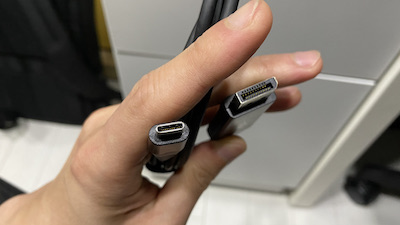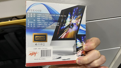 당연히, 고민할 여지 없이 맥미니의 연결 케이블을 USB-C - Display port 케이블로 교체하기로 하였습니다. 인터넷에서 여러 케이블을 검색한 결과 4K-60Hz 를 지원한다는 제품 중에서 적당한 제품을 골라서 주문을 넣고 모니터가 도착하는 날 같이 받았습니다.