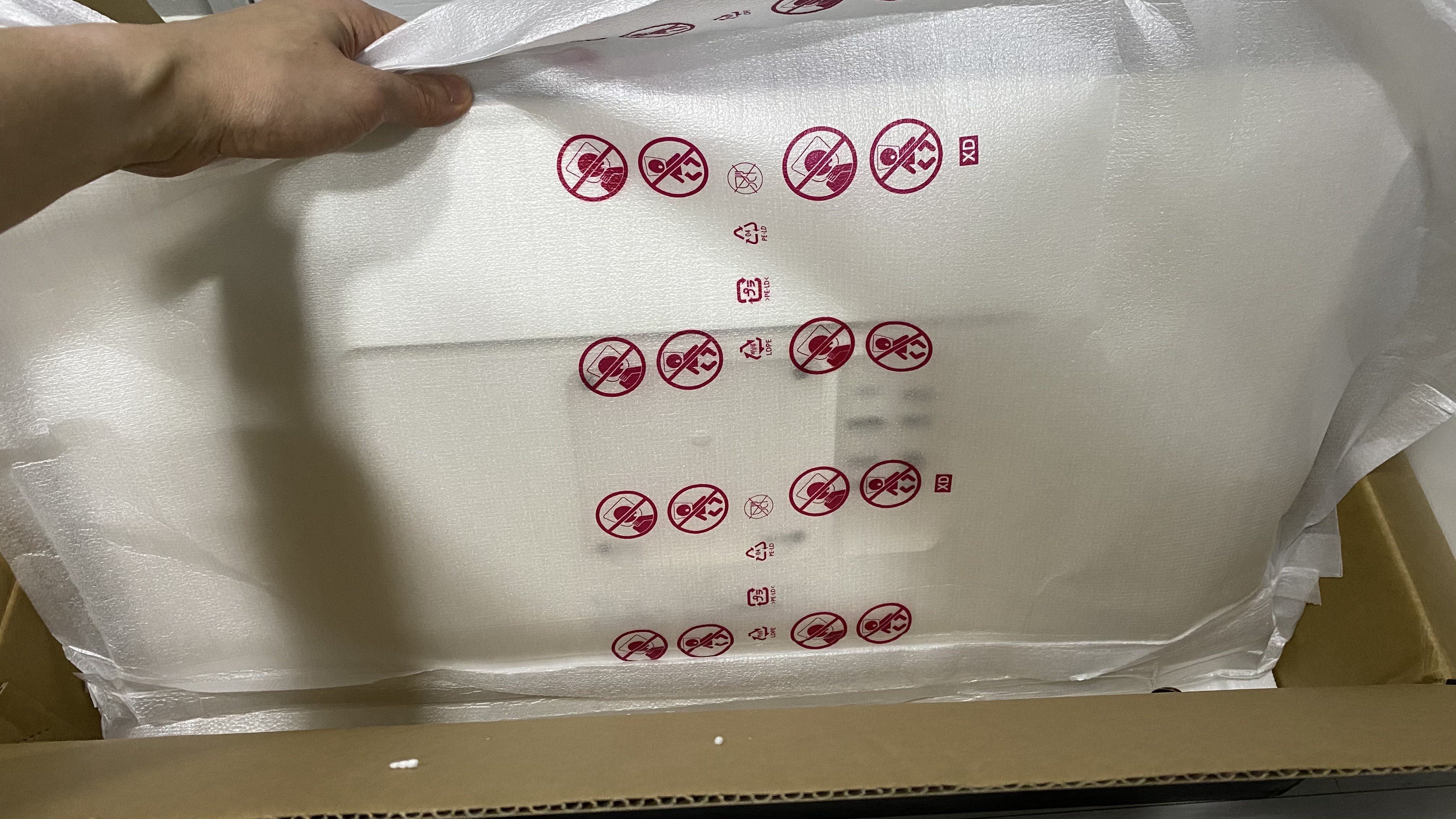 그 아래로 스티로폼을 걷어내면 모니터가 나옵니다. 뽁뽁이 같은건 아니고 저 포장재로 감싸져 있습니다. 그래도 안정적으로 잘 고정되어 있어 충격 등에서는 안전하게 포장되어 있습니다.