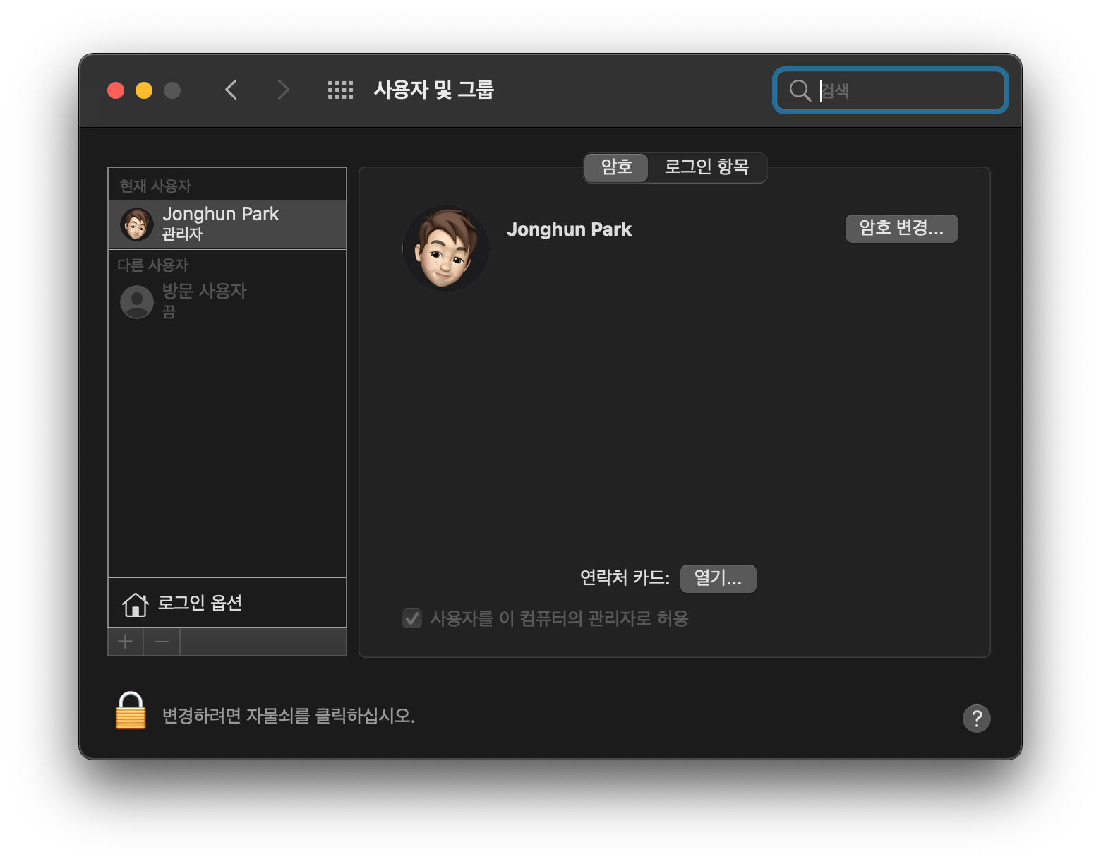 하지만 MacOS 의 경우에는 시작 프로그램 관리라는 것이 없고, 리눅스의 개념을 따라가기 때문에 이에 대한 개념이 필요합니다. Linux 와 같은 형태의 경우에는 시작 시 프로세스가 동작하게 할 수 있고, 이는 단순 Machine 의 시작을 의미하는 것이 아닌, 사용자 로그인의 개념을 갖습니다. 모든 사용자에게 동일한 설정을 하여 시작 프로그램같은 개념을 주는 것은 가능하지만, 이는 시작 프로그램이 아니라, 모든 사용자에게 등록된 로그인 항목 이라고 이야기해야 정확합니다.