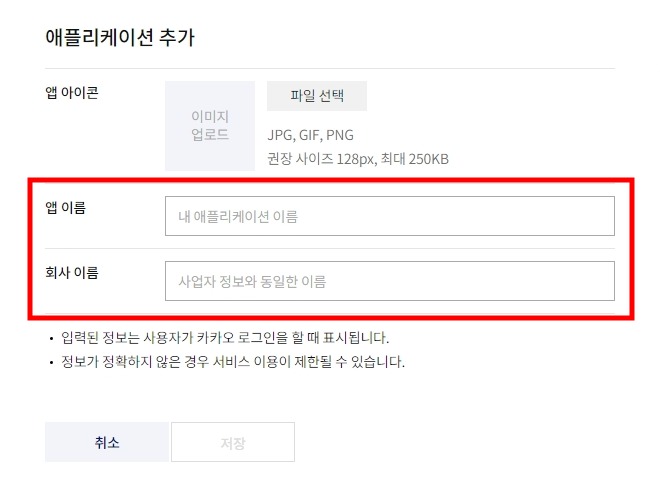 - 앱 이름 : 임의의 구분할 수 있는 이름으로
