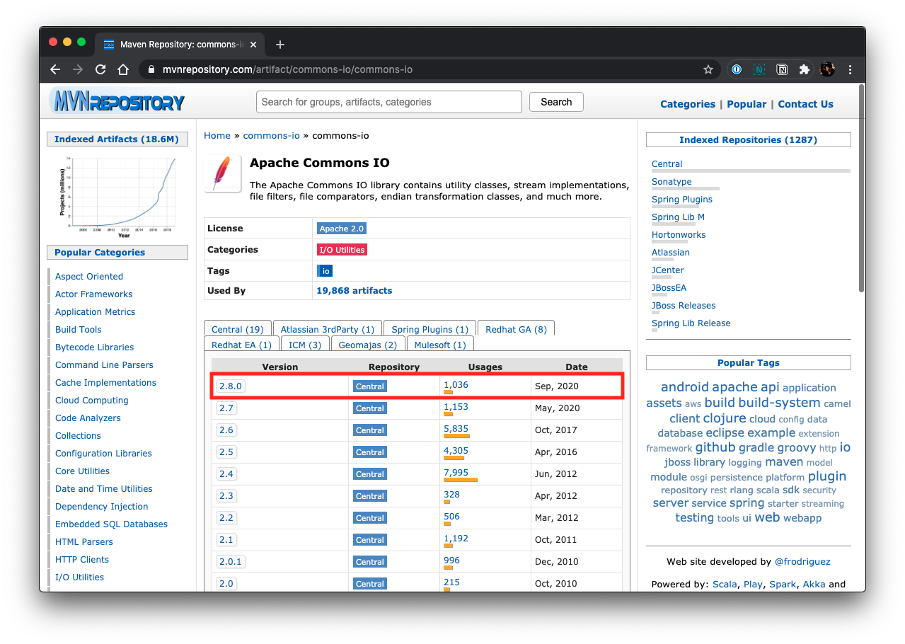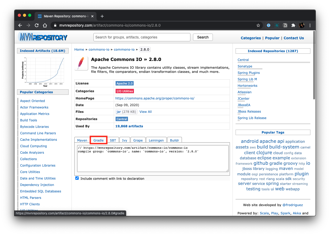 compile 'commons-io:commons-io:2.8.0'