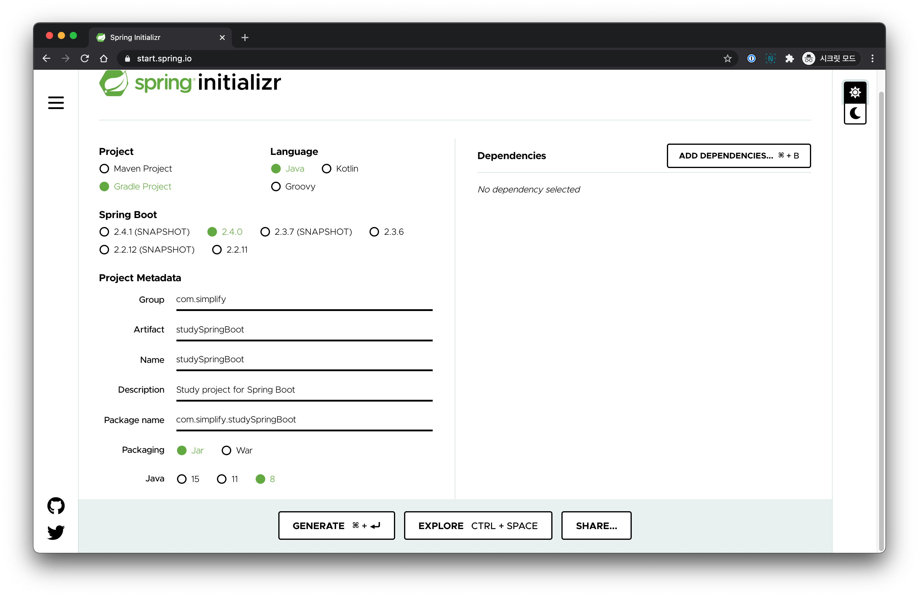 Spring Initializr를 활용하기