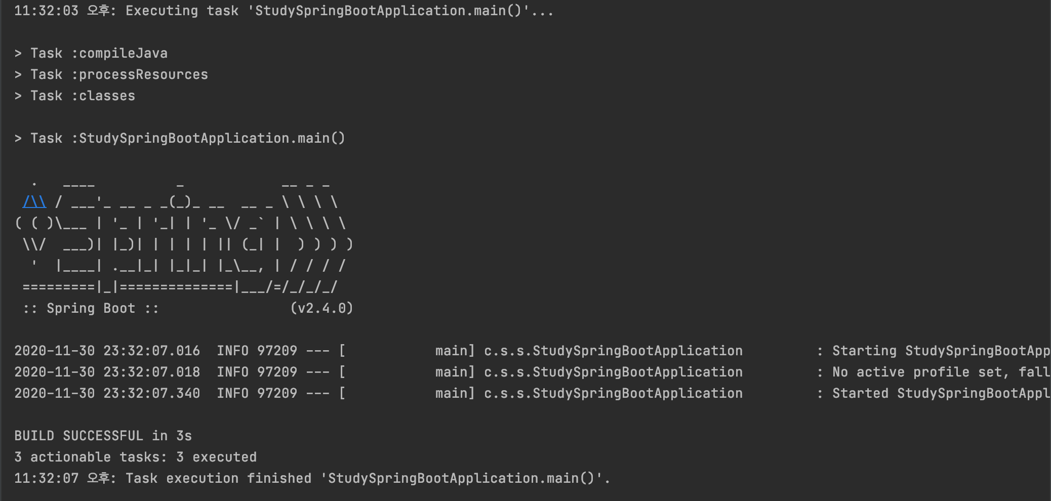 plugins부분에 다음을 추가합니다.id 'org.springframework.boot' version '2.4.0' id 'io.spring.dependency-management' version '1.0.10.RELEASE' -