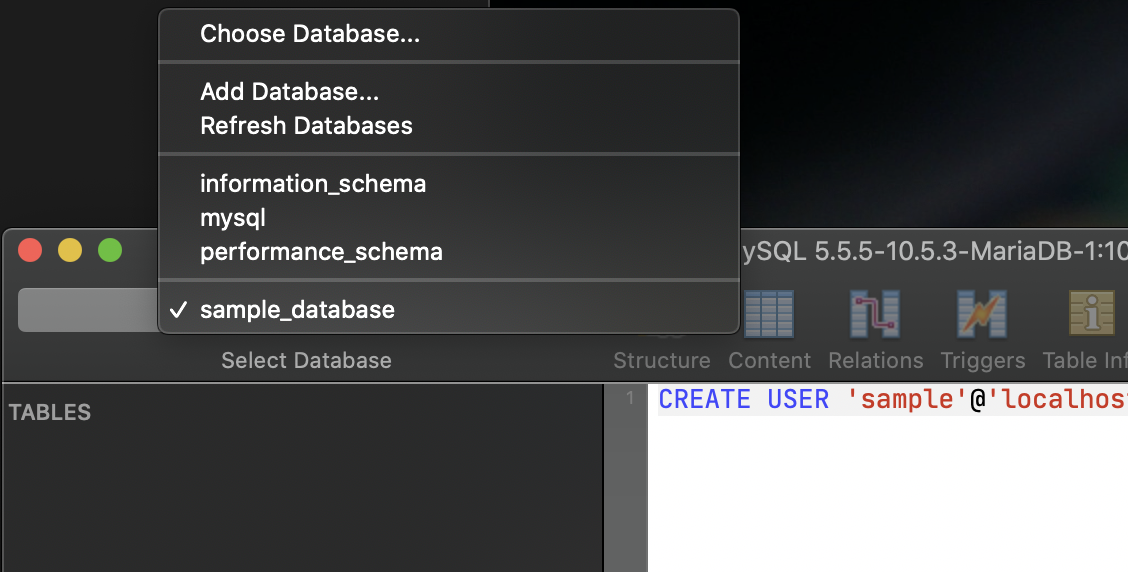 CREATE USER 'sample'@'%' IDENTIFIED BY 'sample';